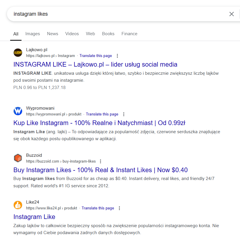 Firmy sprzedające lajki w social mediach.