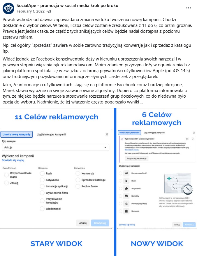 Edukacyjny post social media. Źródło: www.facebook.com/socialapePL