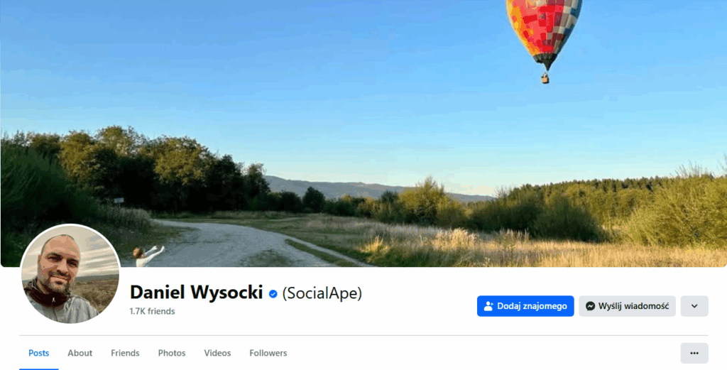 Profesjonalne i naturalne zdjęcie profilowe właściciela SocialApe. Źródło: www.facebook.com/monter/?locale=pl_PL